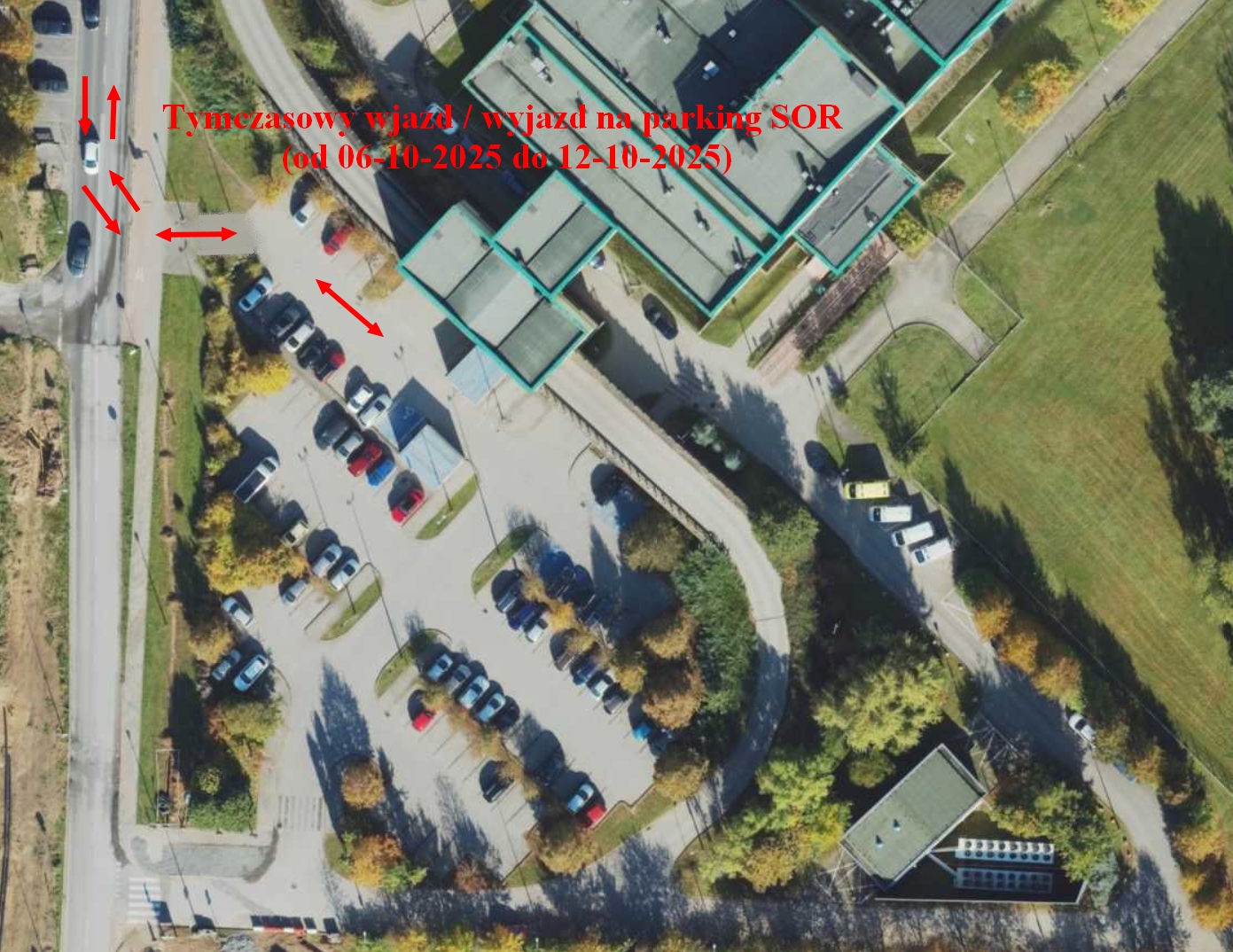 W tym czasie zamknięty zostanie dotychczasowy wjazd na parking i podjazd karetek od strony ronda przy ul. Hubalczyków. Zmienią się zarówno zasady wjazdu karetek, jak i dojazdu pacjentów kierujących się na SOR.