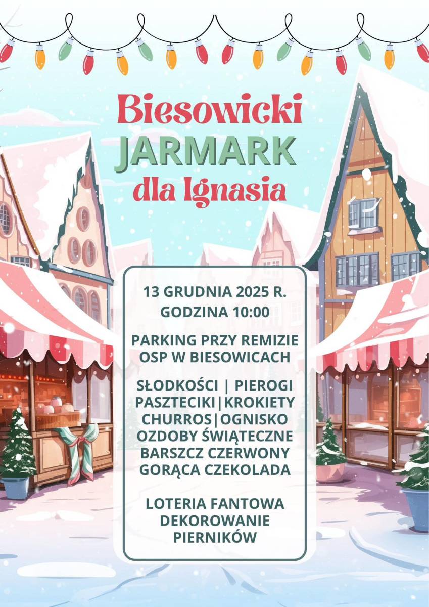 To właśnie z myślą o nim mieszkańcy Biesowic przygotowują wyjątkowe, przedświąteczne wydarzenie - Biesowicki Jarmark dla Ignasia, który odbędzie się 13 grudnia 2025 roku o godzinie 10:00 na parkingu przy remizie OSP w Biesowicach.