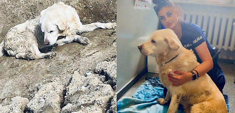 Policjantki Posterunku Policji w Potęgowie otrzymały zgłoszenie o leżącym w rowie wzdłuż torów psie, które wpłynęło prawdopodobnie od jednego z pasażerów przejeżdżającego pociągu. Po paru minutach mundurowe zauważyły labradora, który nie był w stanie wyjść o własnych siłach z głębokiego wykopu. Policjantki owinęły go kocem i wspólnie przeniosły do posterunku, gdzie zaopiekowały się psem, dały się napić, wyczyściły z błota i zaczęły ustalać kto jest jego opiekunem. Po kilkudziesięciu minutach 15-letni Neo był już pod opieką bliskich, którzy odebrali go z posterunku.