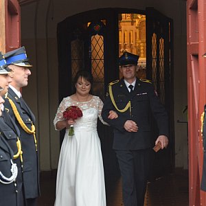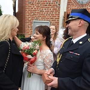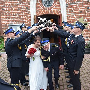 - W uroczystości zaślubin uczestniczyli również koledzy z Jednostki Ratowniczo – Gaśniczej 2 w Słupsku oraz strażacy – ochotnicy z Ochotniczej Straży Pożarnej we Wrzącej. Po uroczystości zaślubin strażacy utworzyli przed kościołem szpaler, pod którym przy dźwiękach uderzeń toporków strażackich przeszła Młoda Para, wkraczając na drogę wspólnego życia - komentują strażacy z Wrzącej.