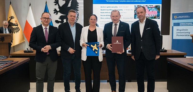 W Urzędzie Marszałkowskim Województwa Pomorskiego podpisano umowę o dofinansowanie projektu pod nazwą „Termomodernizacja trzech budynków użyteczności publicznej w Ustce”. Inwestycja zostanie zrealizowana dzięki wsparciu z programu Fundusze Europejskie dla Pomorza 2021–2027. W imieniu miasta umowę podpisali burmistrz Jacek Maniszewski oraz skarbniczka Izabela Zarzycka. Projekt zakłada modernizację energetyczną trzech ważnych obiektów miejskich: ratusza, hali sportowej Jantar oraz Przedszkola Miejskiego nr 2.