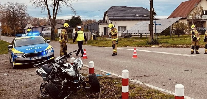 We wtorkowy poranek - 5 listopada - w Pobłociu (gm. Główczyce) doszło do groźnego wypadku z udziałem quada i samochodu osobowego. Na miejsce natychmiast zadysponowano policję, pogotowie i straż pożarną. 37-letni kierowca quada wymagał hospitalizacji.